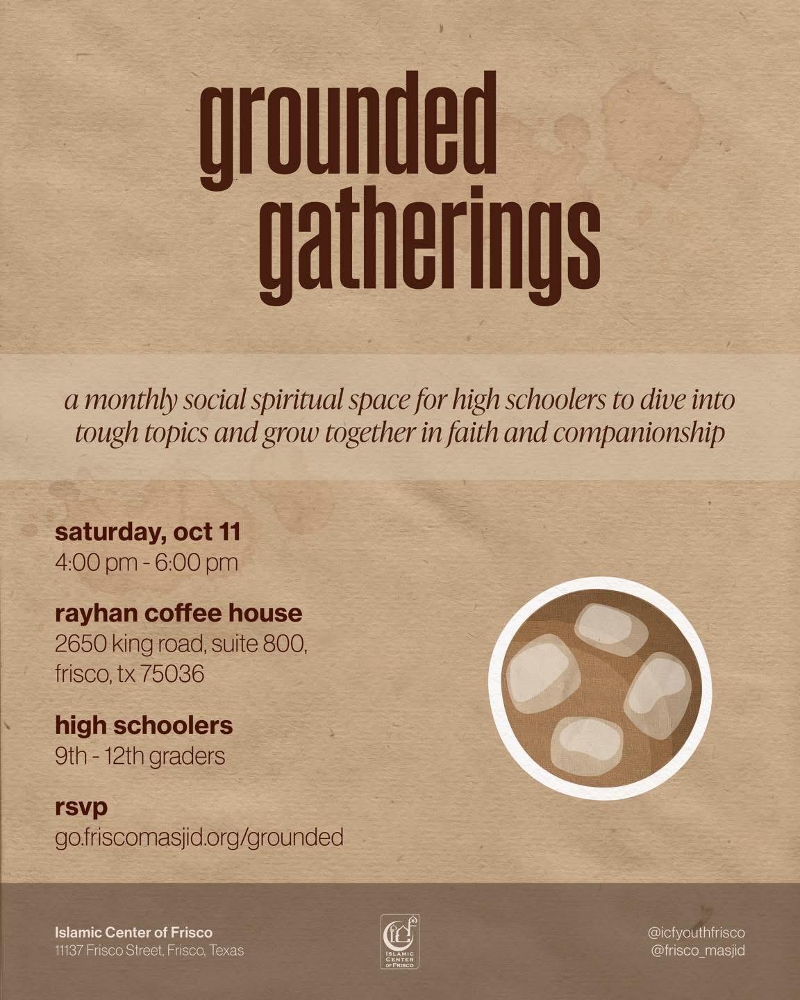 Ditch the drama and dive deep this Saturday! ICF Youth is hosting Grounded Gatherings, a monthly space where high schoolers can tackle tough topics, grow in their faith, and build genuine friendships. Best of all? Itโs happening right where the good stuff is brewedโat Rayhan Coffee House! Get ready for some real talk and great company.