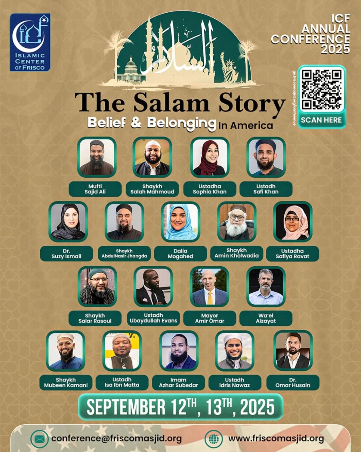 The Islamic Center of Frisco invites you to its Annual Conference this weekend, themed "The Salam Story: Belief & Belonging in America." This is a major two-day event featuring an incredible lineup of renowned speakers, including Mufti Sajid Ali, Shaykh AbdulNasir Jangda, Dalia Mogahed, and Mayor Amir Omar. It's an excellent opportunity to gain a deeper understanding of our faith and identity in today's world.